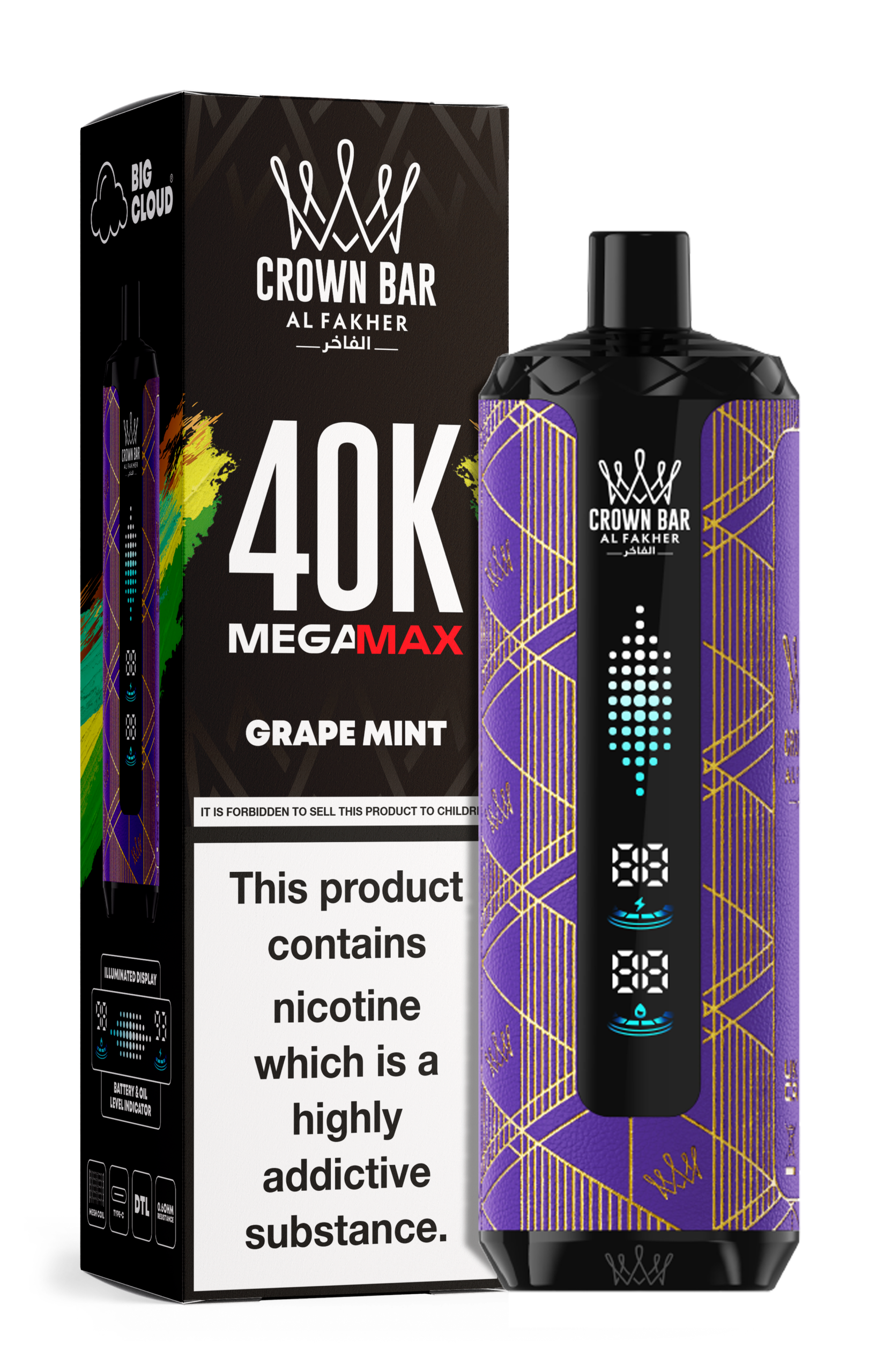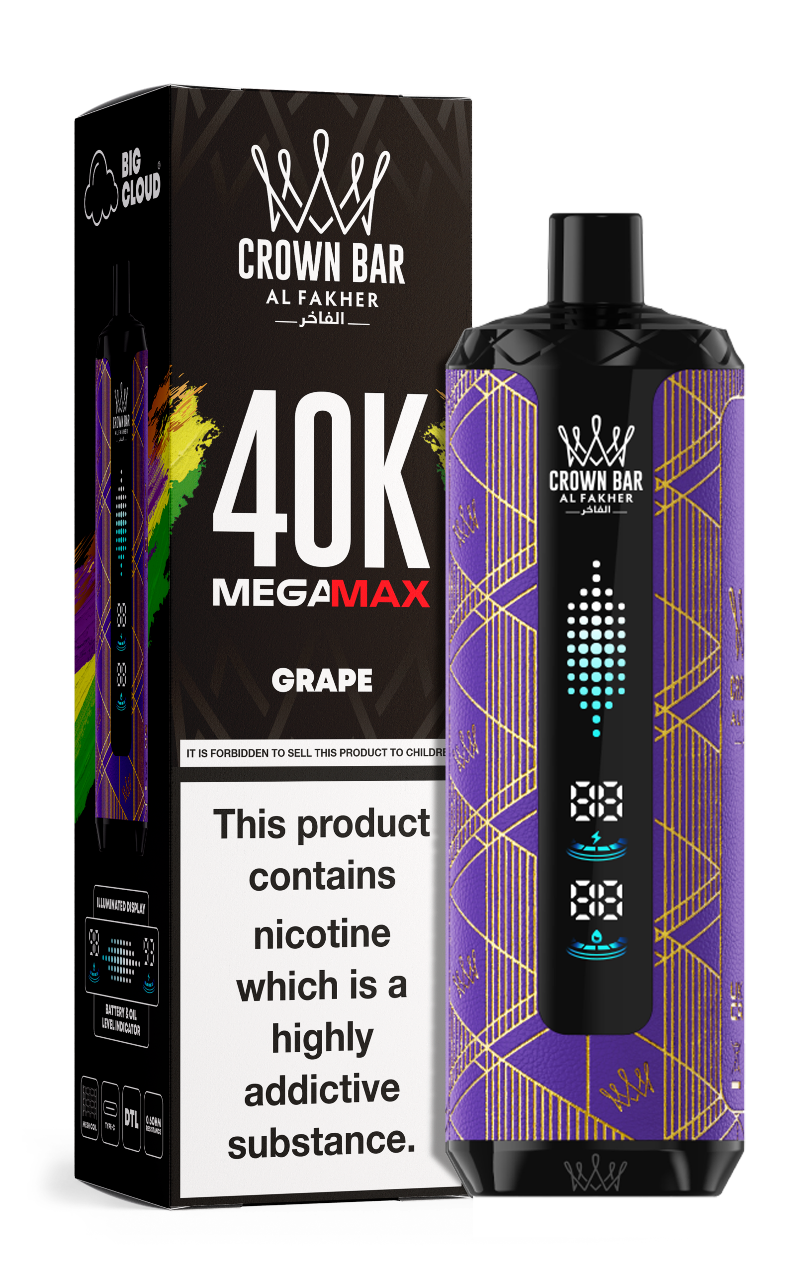 SKU: N/A Categories: Al Fakher, CROWN BAR, Disposable Vape Tags: 40K, Crown Bar, DISPOSABLE, MEGAMAX, New Arrival