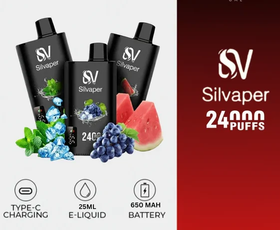 SILVAPER 24000 Puffs disposable vape is a edge-cutting vaping device from Brand SILVAPER — ultimate vaping solution for who crave for vaping device combines robust and performance. The device offers an unmatched convenience and longevity. Designed for vapers or users those seeking a hassle-free experience, delivers up to 24,000 puffs, ensuring you stay hassle free for weeks without the need for refills or recharges. With its sleek, portable design and impressive flavor range, SILVAPER combines durability, performance, and style in one powerful package.